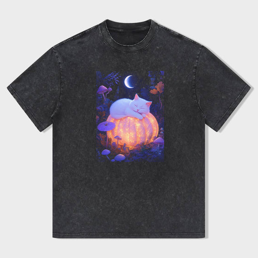 Cute Cat on Pumpkin Halloween Graphic T-Shirt