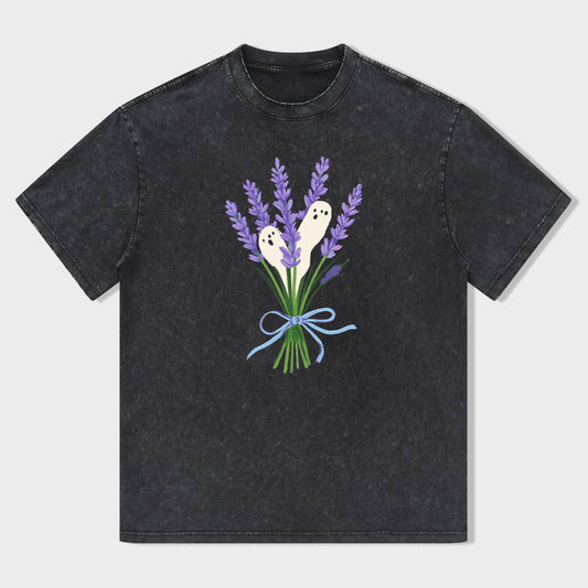 Lavender Bouquet Ghost Design Women's Graphic Tee T-Shirt