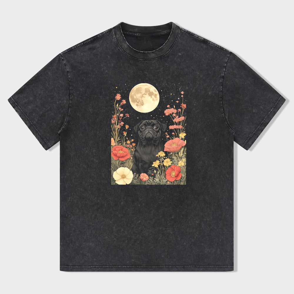 Black Labrador with Flowers and Moon Graphic T-Shirt