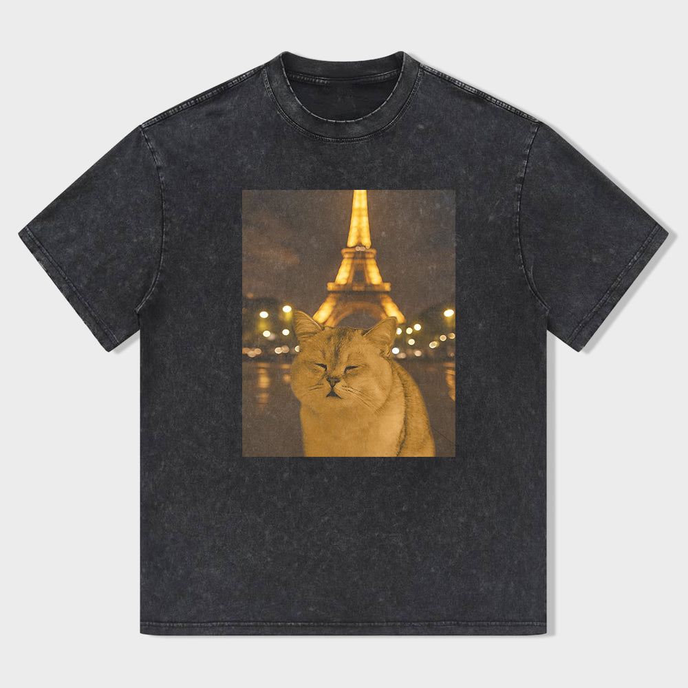 Cat Taking Selfie with Eiffel Tower Funny T-Shirt