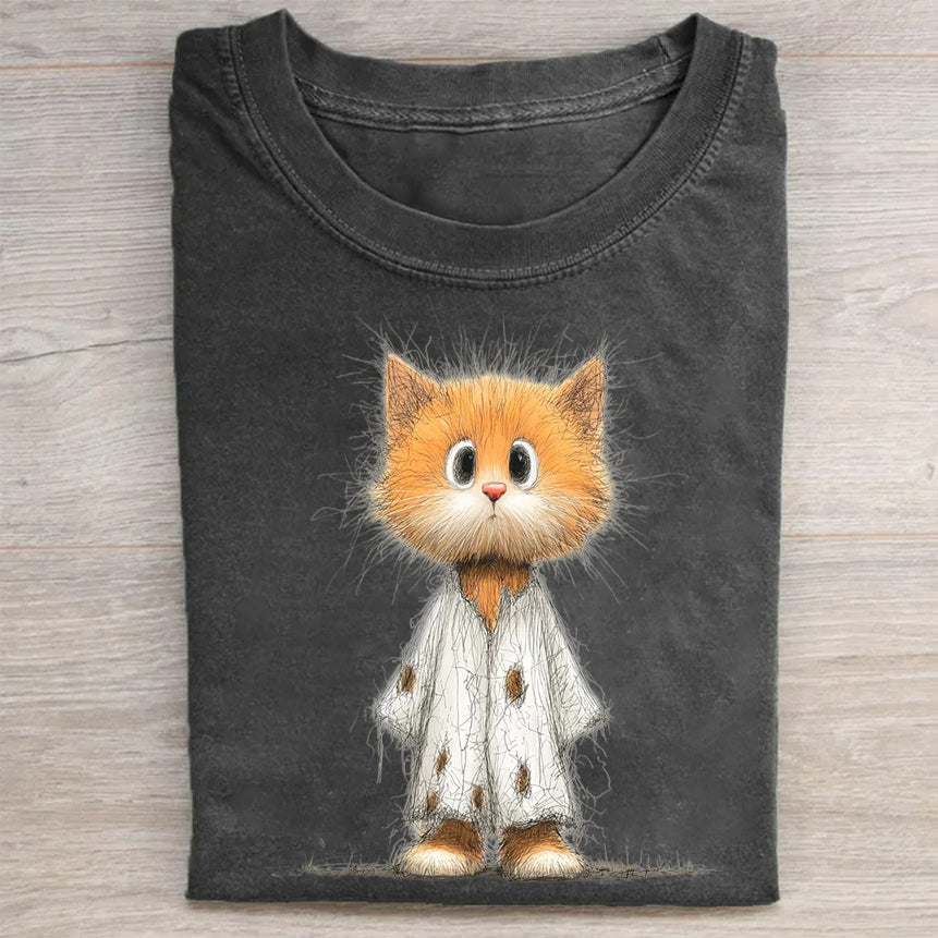 Cute Kitten in Sweater Graphic Print Casual T-Shirt