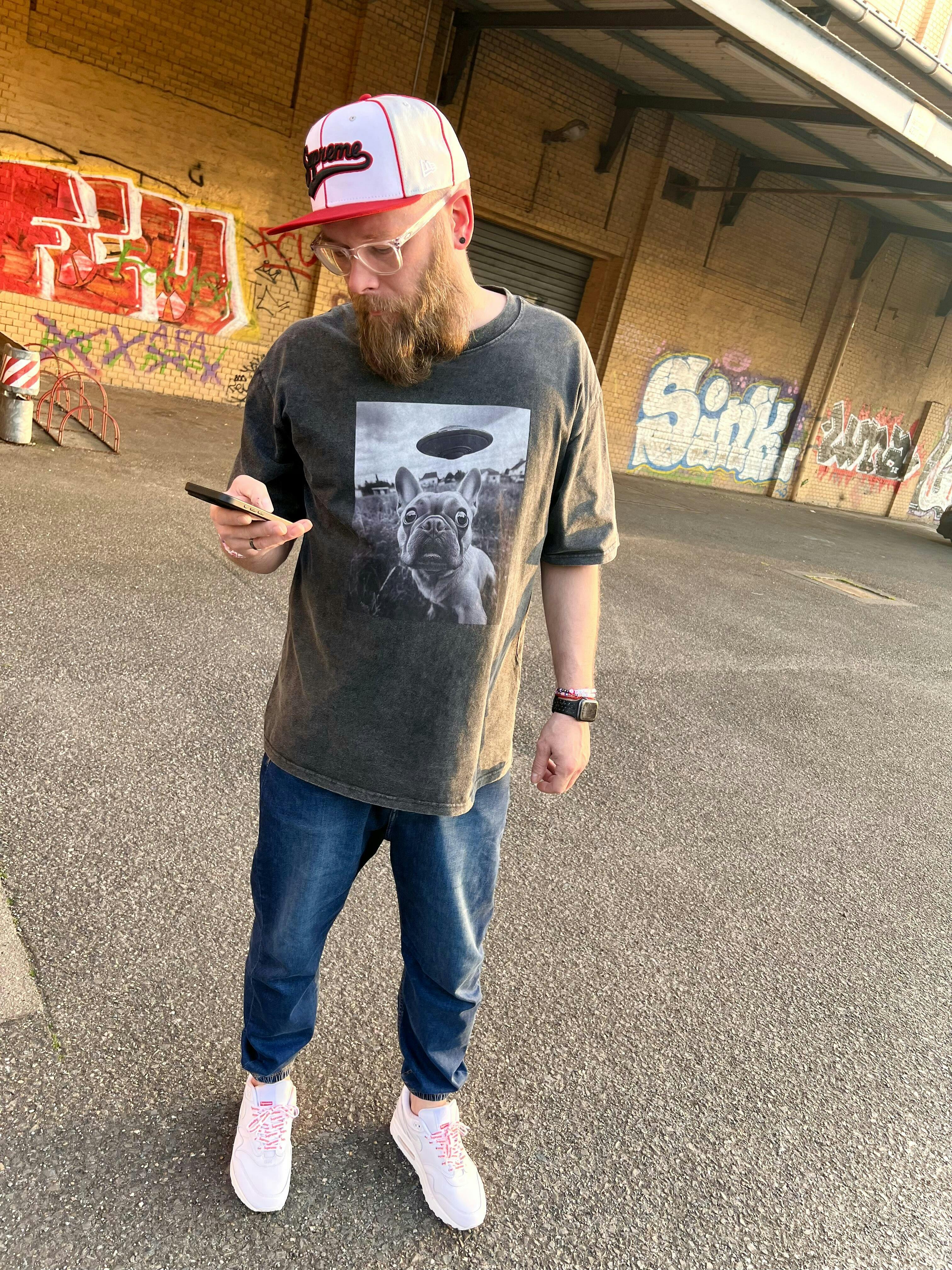 French Bulldog Taking Selfie with UFOs Funny T-Shirt
