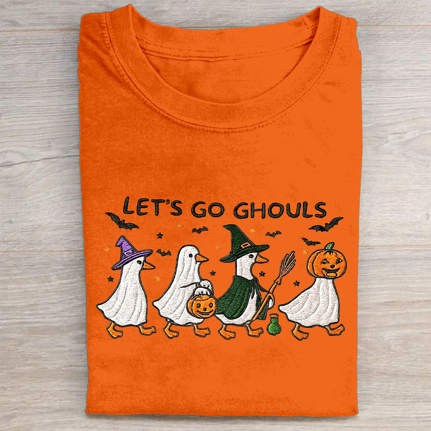 Let's Go Ghouls Halloween Ghosts and Pumpkin Graphic Print T-Shirt