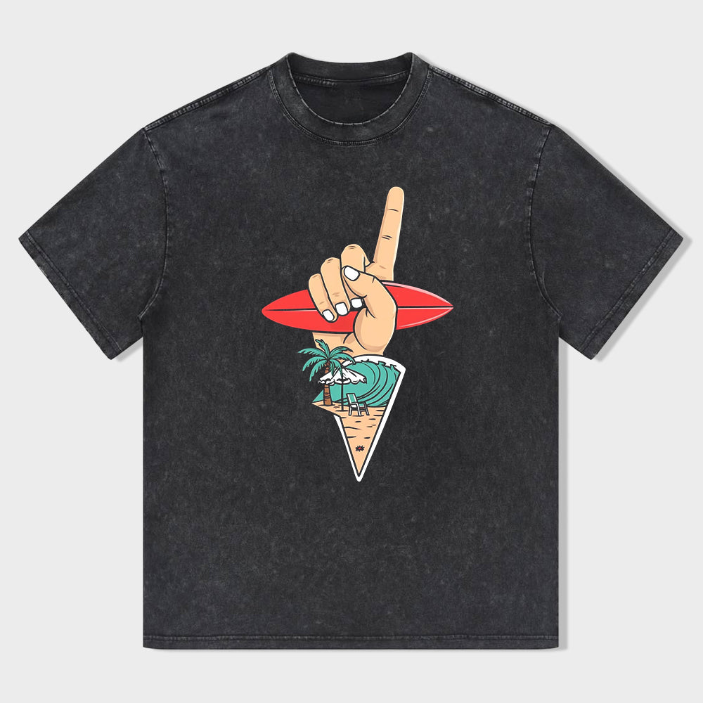 Men's Graphic T-Shirt - Black Surf Hand Gesture Tee