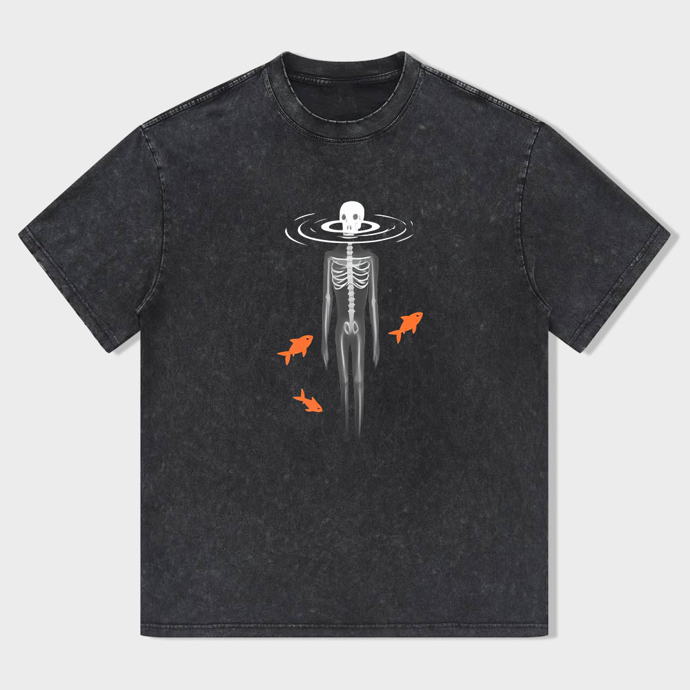 Skull Skeleton Fish Graphic Print Men's Casual T-Shirt