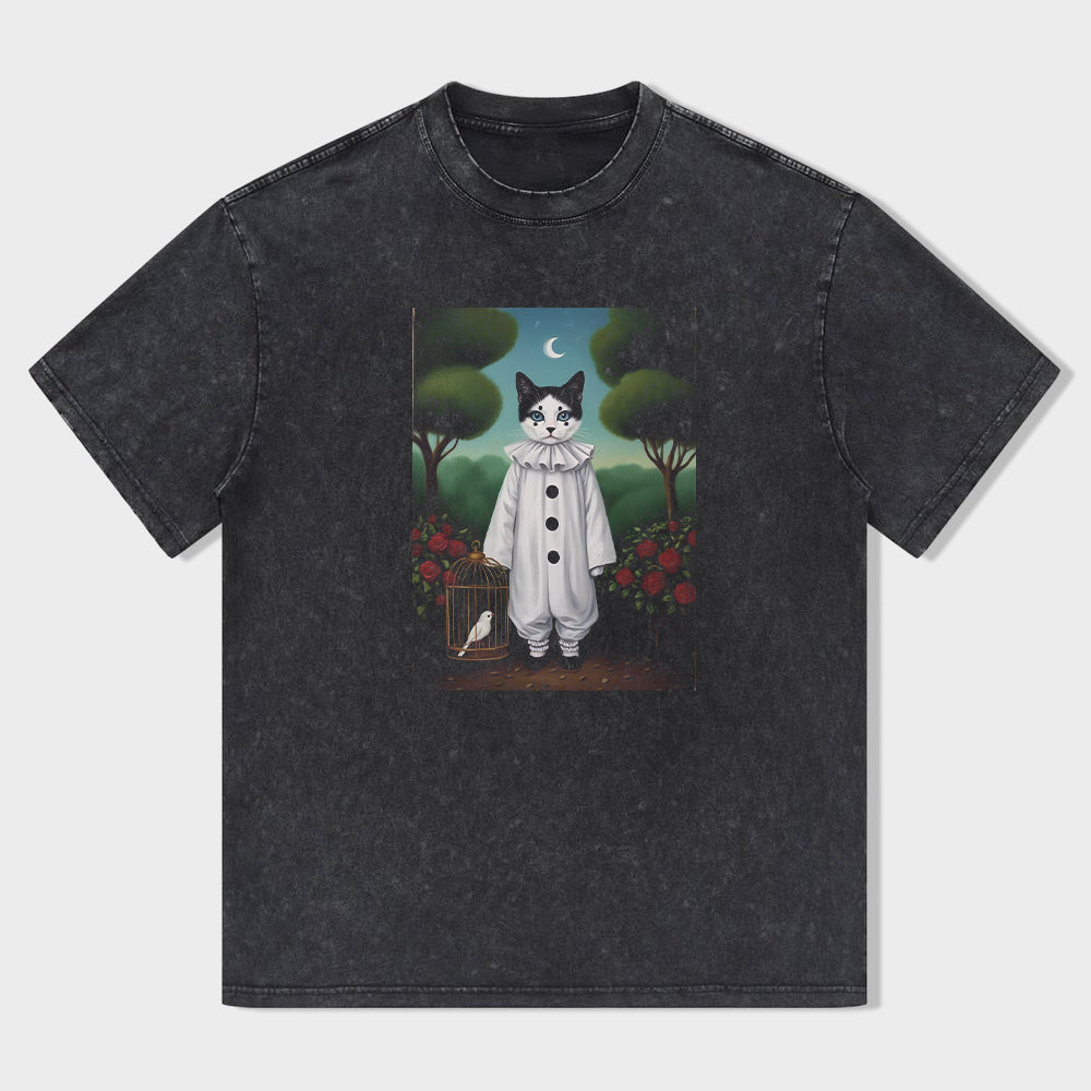 Vintage Black T-Shirt with Cute Cat Clown Graphic Print