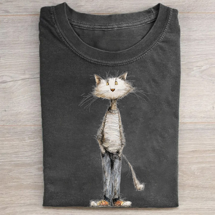 Whimsical Cat Art Print Graphic T-Shirt